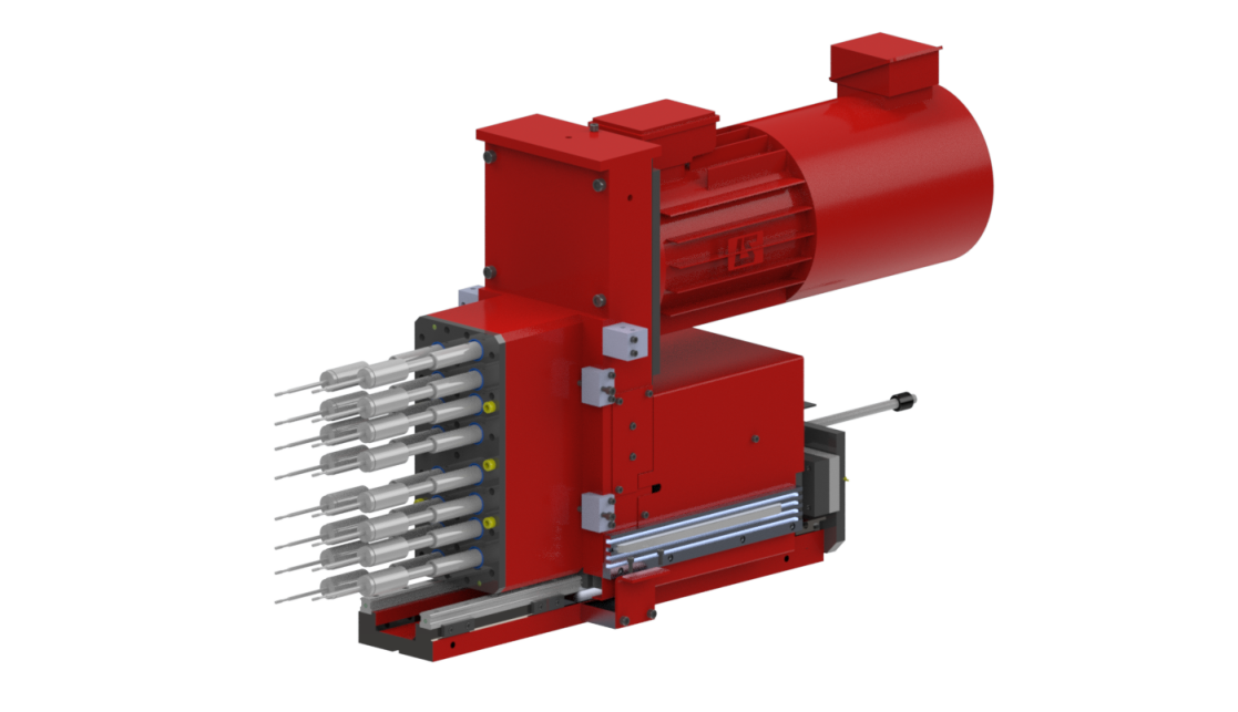 - Spindeln mit Köpfen zum Richten, Gorieren und Gewindeschneiden. Steuerung durch Servomotor oder Hydraulikzylinder.