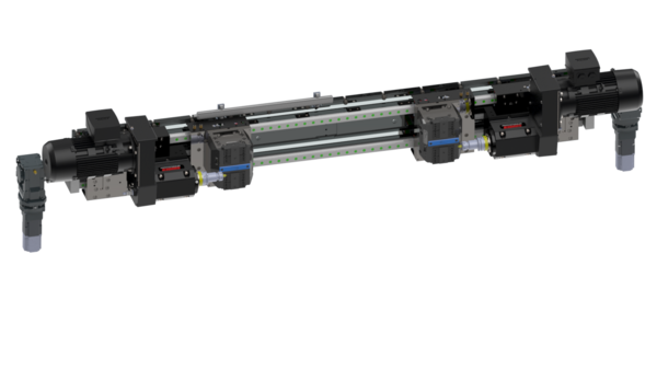 - Die spezielle Translationseinheit mit einer Länge von ca. 3 m ist mit zwei unabhängigen Kugelumlaufspindelschlitten ausgestattet.