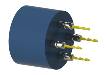 Mehrspindelbohrkopf mit bis zu 8 Spindeln und vorgespannten Kugellagern für den Einsatz von Hartmetallwerkzeugen.