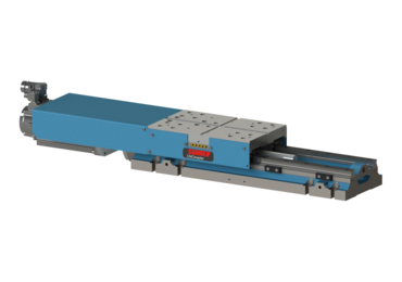 Robuster und präziser Vorschubschlitten mit Servoantrieb und Kugelumlaufspindel. Zur Aufnahme der Spindeleinheit MAX 100 der MAX 100 CO ausgelegt.