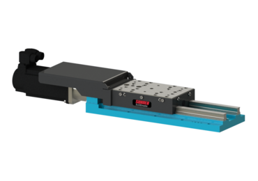 Robuster und präziser Vorschubschlitten mit Servoantrieb und Kugelumlaufspindel. Zur Aufnahme der Spindeleinheit BEX 15.